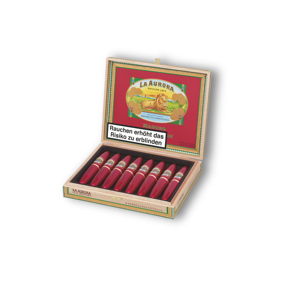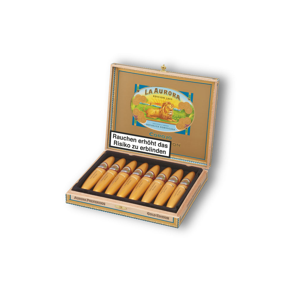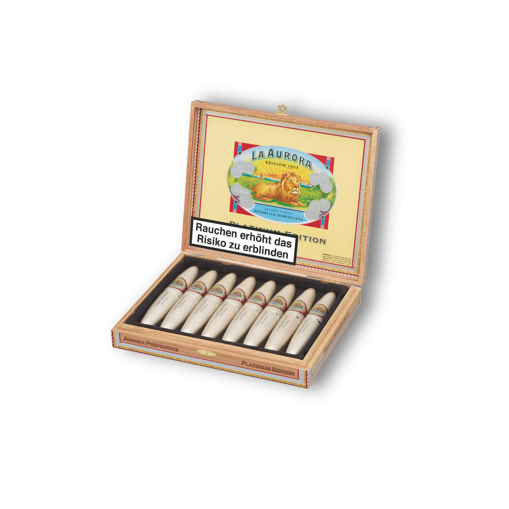 Seit 1903 zeichnen sich die Cigarren von Aurora durch die strenge Auswahl des Tabaks und die sorgfältige Fertigung eines wahren Kunstwerkes aus, das ein Niveau erster Klasse im weltweiten Standard erreicht hat - eine Cigarre, authentisch vom Tabak bis zu den dominikanischen Händen, die sie mit Sorgfalt gerollt haben.